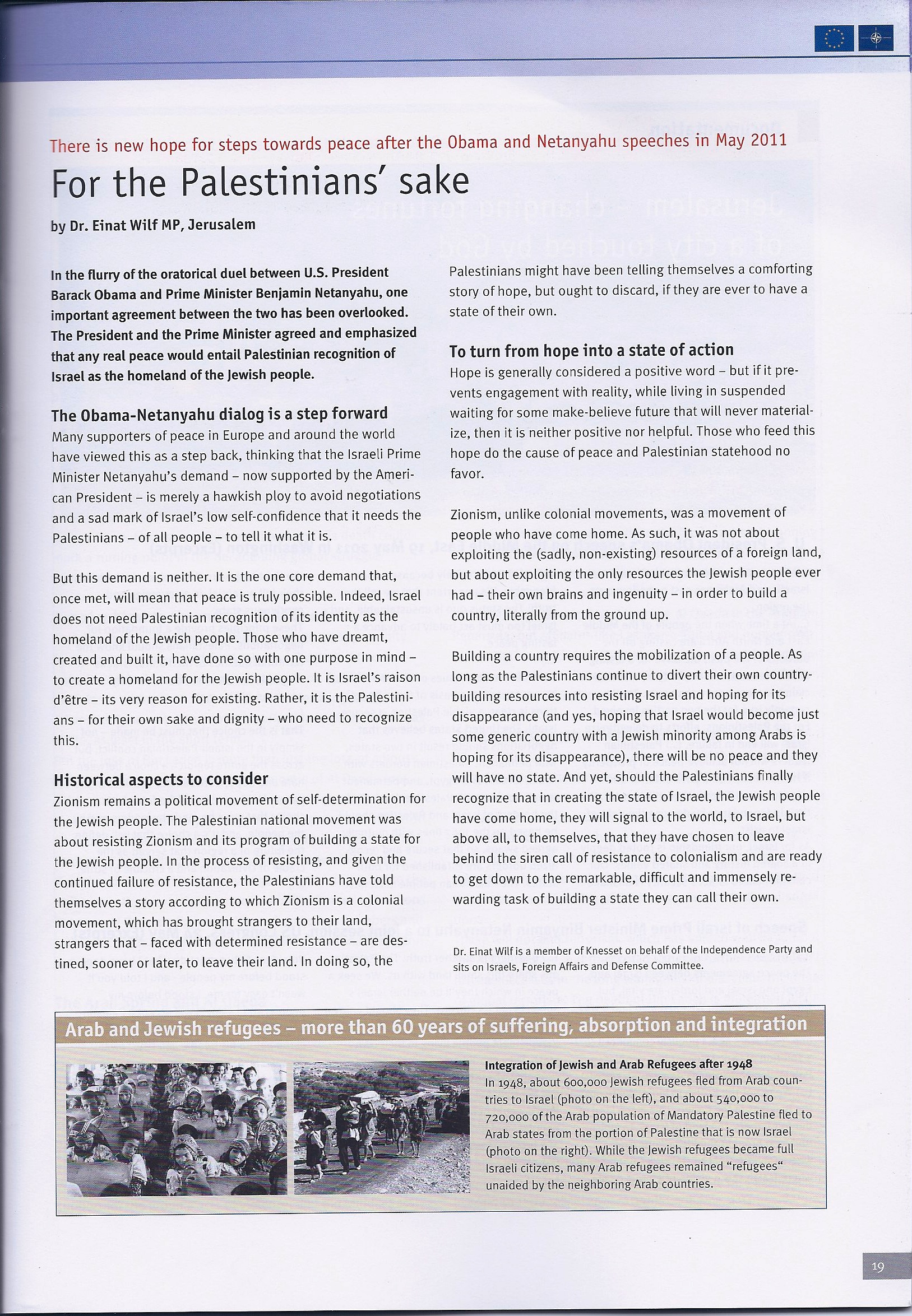 Archive, Articles For the Palestinians’ Sake – Article in ‘the European Security and Defence Union’ June 1, 2011