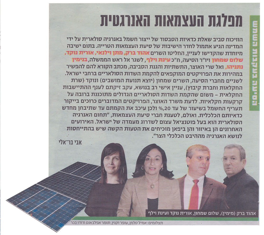 חברי סיעת העצמאות במכתב לראש הממשלה ולשרי האוצר, התשתיות הלאומיות והגנת הסביבה, במסגרת יוזמה לקידום תחום האנרגיה הסולארית בישראל. אנרגיה סולארית – רהמ