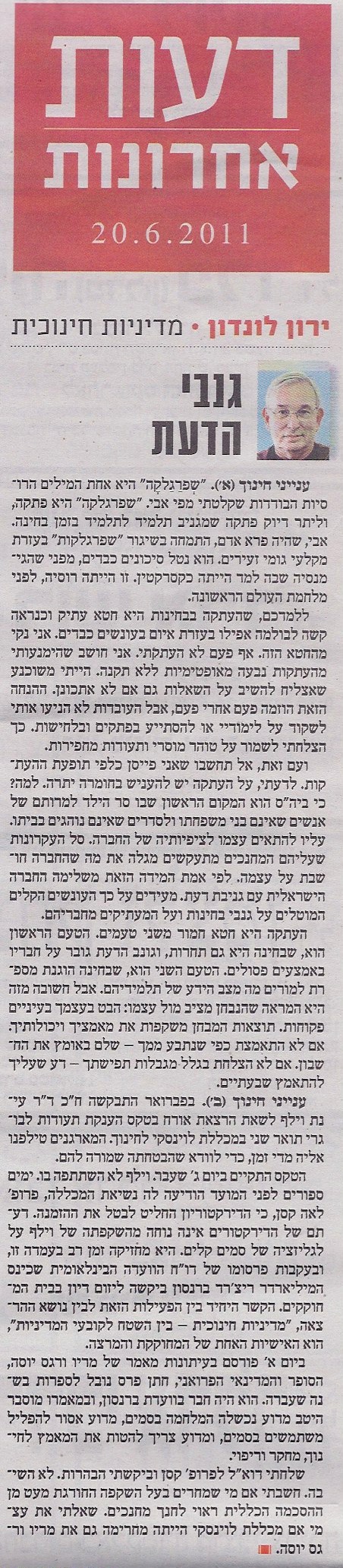 בתקשורת, חינוך ירון לונדון מצדד בח"כ עינת וילף – דעות אחרונות יוני 20, 2011 ירון לונדון מצדד בח"כ עינת וילף – דעות אחרונות