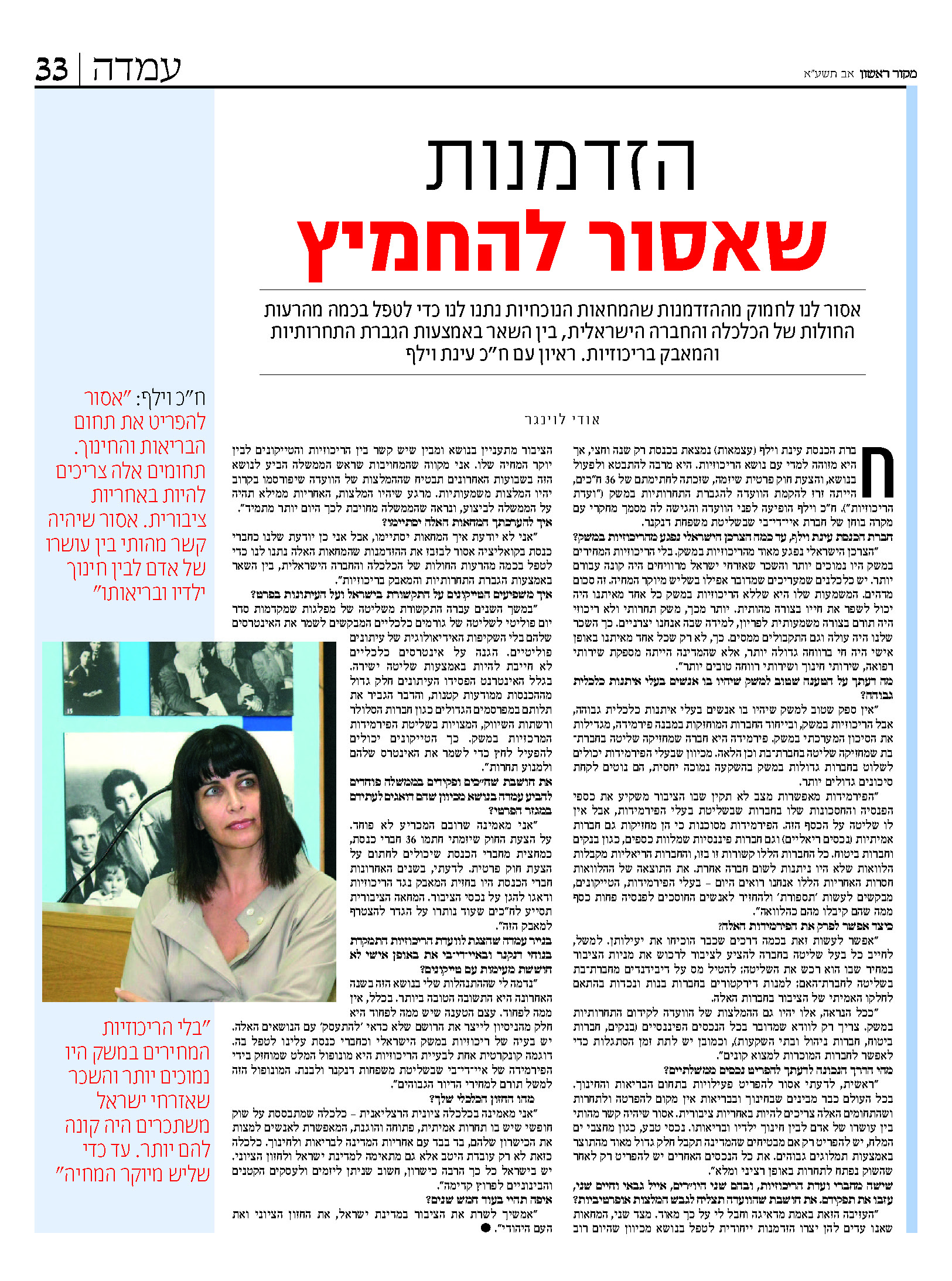 אסור לנו לחמוק מההזדמנות שהמחאות הנוכחיות נתנו לנו כדי לטפל בכמה מהרעות החולות של הכלכלה והחברה הישראלית, בין השאר באמצעות הגברת התחרותיות והמאבק בריכוזיות. ראיון עם ח"כ עינת וילף