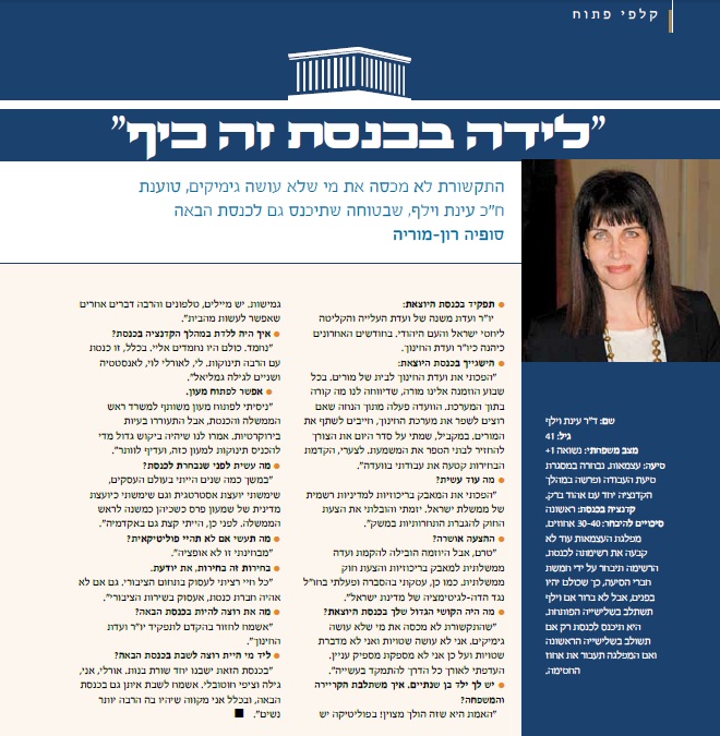 ארכיון, בתקשורת, חינוך, סיעת עצמאות ח"כ וילף בראיון למגזין נשים של מקור ראשון לקראת בחירות 2013 נובמבר 23, 2012 מגזין נשים מקור ראשון לקראת הבחירות – 23.11.12